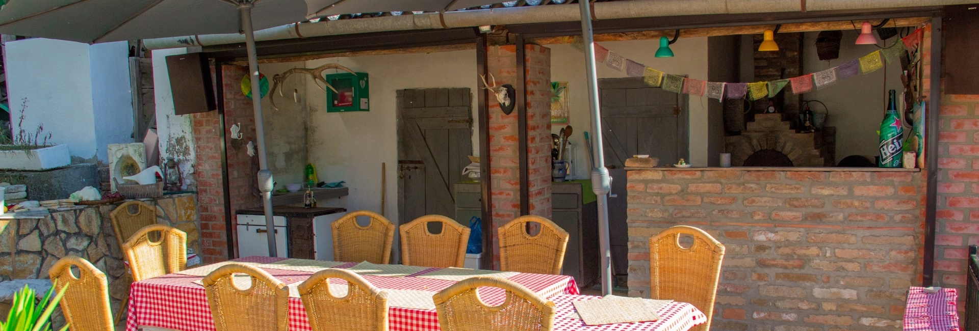 Ook deze mooie boerderij is zomers koel (airco's) en lekker warm in de winter dankzij de tegelkachel. Mooi privé zwembad (rond) met mooie terrassen, en over de hele lengte een veranda waarlangs wijndruiven groeien. Totale perceelgrootte is ca. 5500m2. "Otrabanda" is authentiek mooi opgeknapt, ruim en comfortabel en voorzien van airconditioning. Een eigen terras met grill, veranda met 2 deuren. 2 ruime slaapkamers, gezellig ingerichte woonkamer met kunst aan de muur en een tegelkachel en TV. Direct aan de voorkamer is een badkamer ensuite met douche en toilet. Verder een LED-TV met NL zenders. Door de gangen heenlopend, kom je uiteindelijk in de typisch Hongaarse keuken met kookcomfort en koelkast. En verder aanwezig alle benodigde apparaten als koffiemachine, waterkoker, eirenkoker en magnetron-oven. Een deur naar de ruime badkamer (met douche en wasmachine) en een aparte toilet. De buitendeur leidt weer naar de veranda.